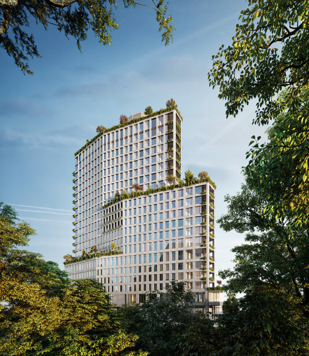 The building also features onsite “automated parking,” wherein robotics developed by German company Lödige Industries park residents’ cars for them, and also retrieve them from the parking lot (a video demonstration of the technology can be seen here).