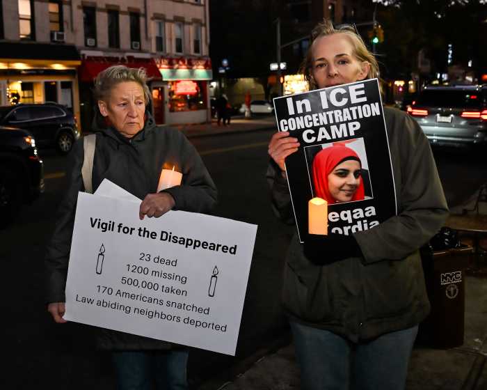 While U.S. Immigration and Customs Enforcement (ICE) and U.S. Customs and Border Protection (CBP) ramp up enforcement actions against immigrant communities — over the weekend, masked agents targeted Charlotte, North Carolina, a sanctuary city, detaining more than 130 people — activists with Indivisible Brooklyn, an all-volunteer grassroots group that organizes actions and events to promote justice and hold elected officials accountable, held a candlelight vigil outside U.S. Rep. Nicole Malliotakis’ Bay Ridge office on Nov. 17 for the “disappeared.”