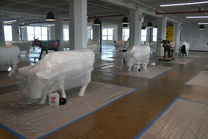 Colorful cows will be on view from August through September at Industry City, where 75 different artists from around the world are currently putting the finishing touches on their not-so-livestock. At the end, the carefully curated cows are put out to pasture — and sold by auction to the highest bidder.