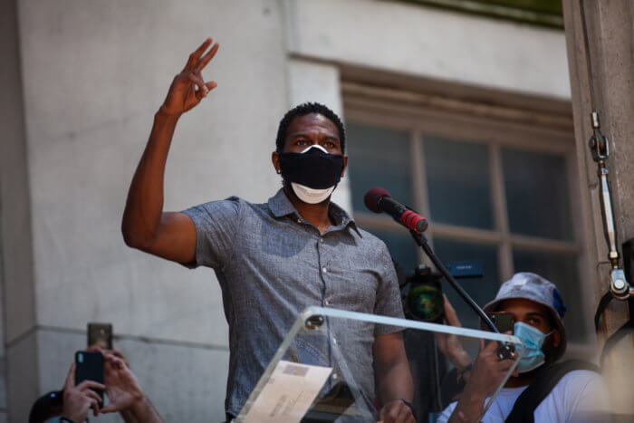 “We need you to cut a billion dollars from budget of the police. And that’s just a start,” he told the crowd. “Stop giving us platitudes, man, we need real change.”