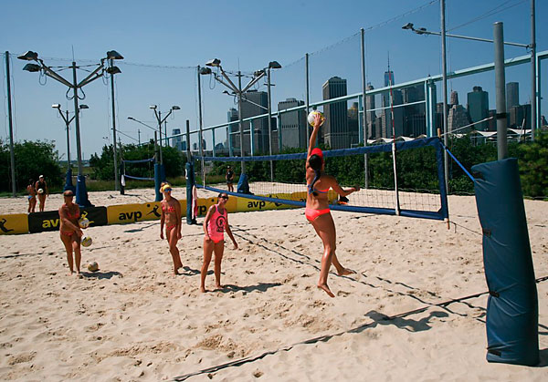 The league finally returned to New York last week with a new tourney dubbed the New York City Open, which included heats in Brooklyn and on the distant island of Manhattan. But instead of returning to the sun-kissed shores of Sodom by the Sea for the Kings County leg on July 16, it held the contest at the man-made courts at Pier 6 in Brooklyn Heights, where the nation’s top bikini-clad athletes scooped and served next to a dog run and a condominium complex.
