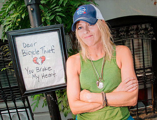 Now, she wants the thief — and all those black-marketeers — to know that stealing a gal’s bike can be like kidnapping her best friend. And she hopes to shake loose enough pathos to make those jerks think twice.