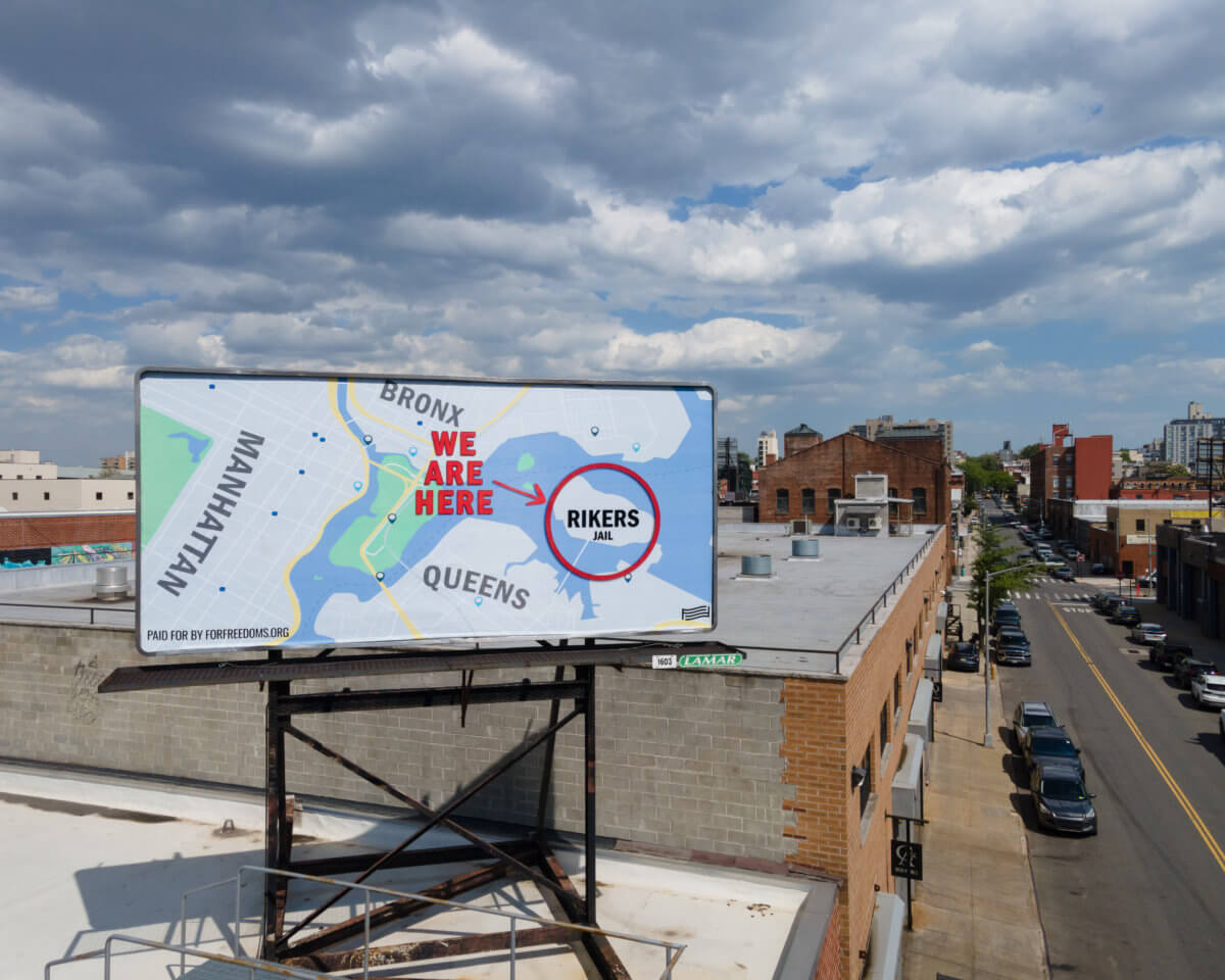 A new billboard in Gowanus is hoping to raise awareness about the humanitarian crisis at Rikers Island and remind New Yorkers about their proximity to the infamous jail as part of a new nationwide campaign.