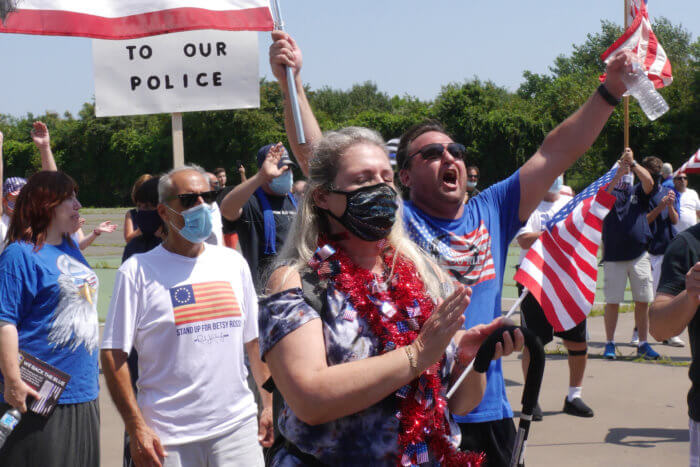 A post on social media from the Lieutenant Benevolent Association said the pro-police rally had been postponed due to the extreme heat — but a small, passionate group of local residents came out anyway to back the blue.
