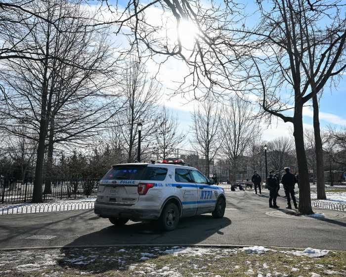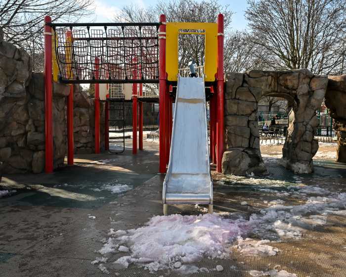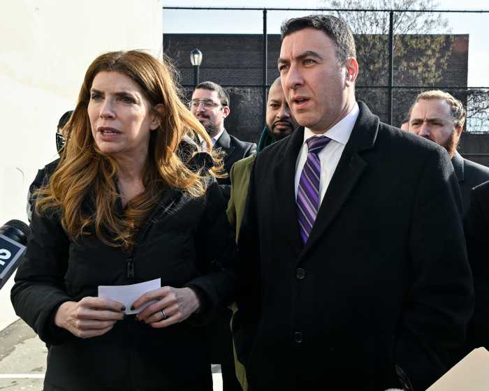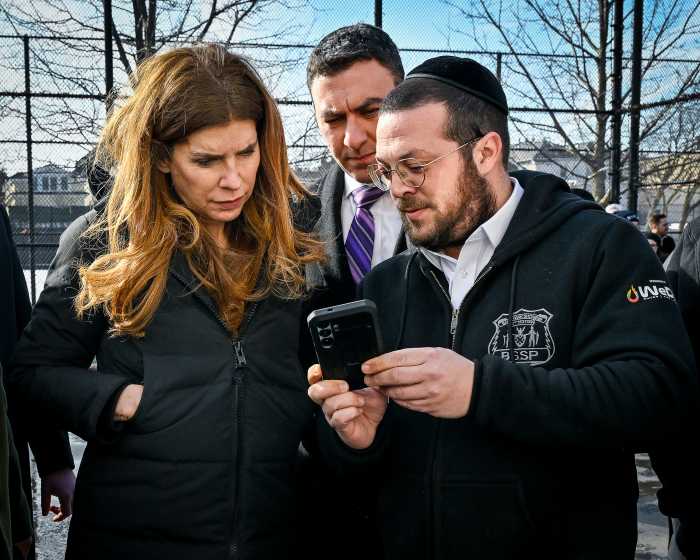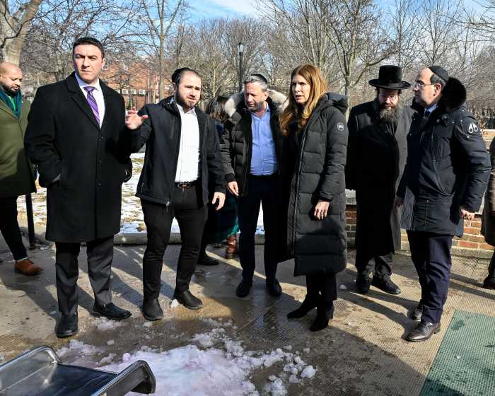 After back-to-back incidents of antisemitic vandalism at Gravesend Park on Tuesday and Wednesday — in which vandals painted a total of 57 swastikas and the name of Adolf Hitler on playground equipment, walkways and walls in red and blue — City Council Speaker Julie Menin and Council Member Eric Dinowitz (D-Bronx) toured the playground Jan. 22 alongside community members, condemning the hateful attacks.