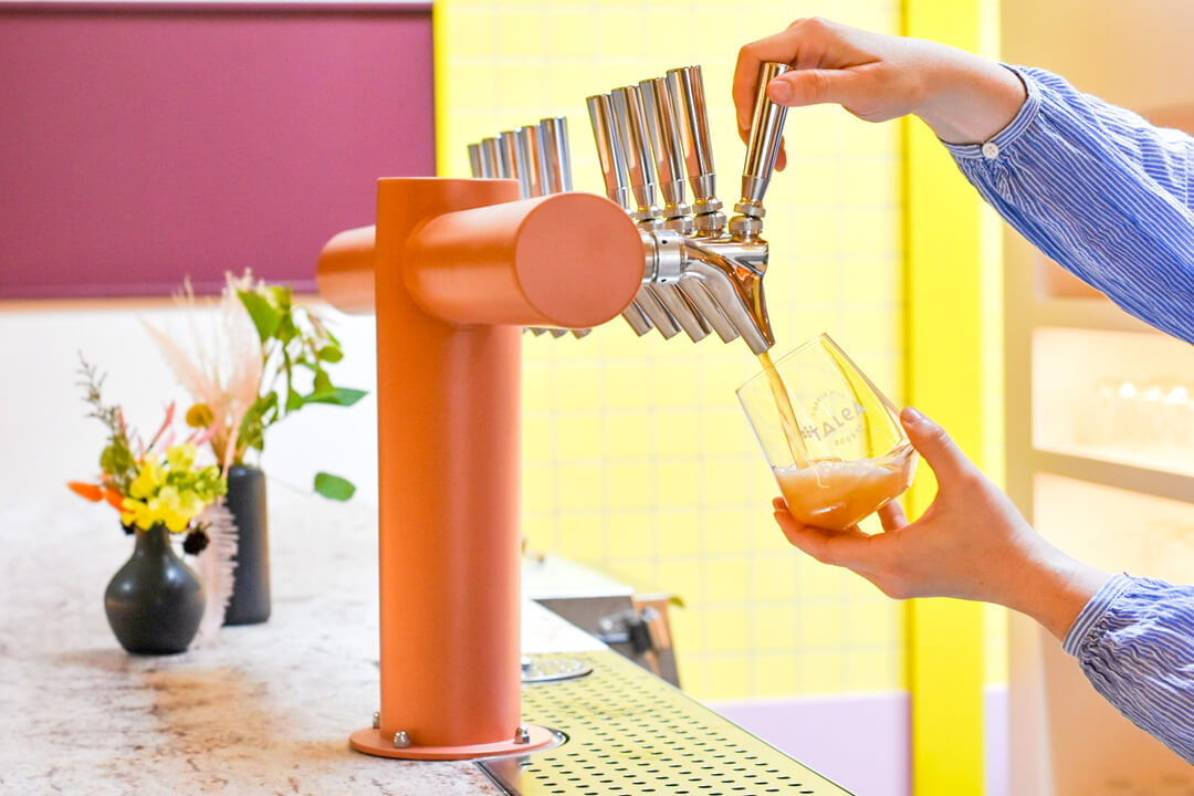 Both the Williamsburg location and the new Cobble Hill taproom were designed by Carpenter + Mason and built by the Cocozza Group, and the new location maintained Talea’s light-filled, colorful aesthetic — which Darland and Hankinson chose specifically so the space would feel welcoming to women and families.