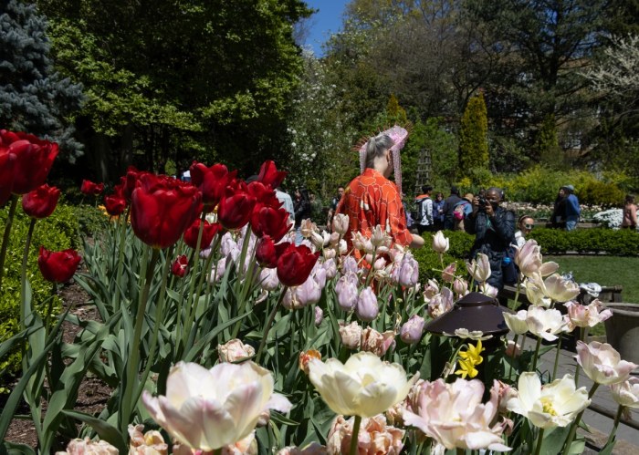 The spring break crowds descended on Brooklyn Botanic Garden this week to revel in views of cherry blossoms, tulips, and other signs of spring.