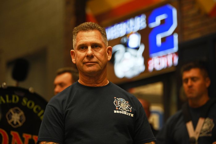 He spoke of the Atlantic Avenue fire, where Firefighter Timothy Stackpole was severely injured yet battled his way back to the firehouse. Wood also remembered the 2008 John Martinson fire at the Ebbets Field Houses and a massive fourth-alarm fire at 132 Montague St. in 2021, calling it “a damn crazy fire.”