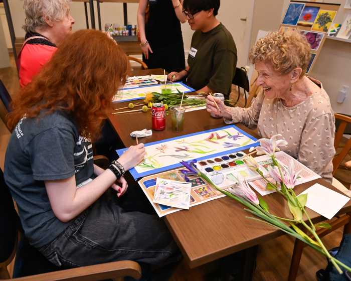 For the past five months, high school students from Brooklyn Friends School’s art club and residents of The Watermark at Brooklyn Heights, a luxury senior living community, have been meeting once a month for an hour of collaborative art at the residence’s art studio.