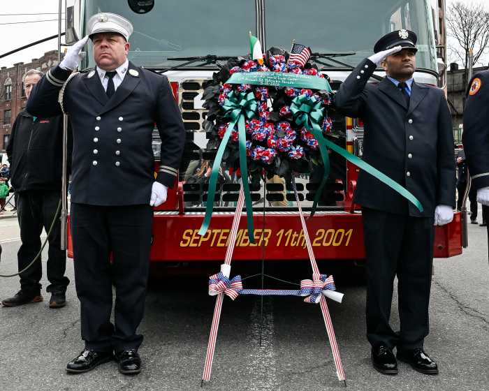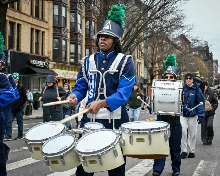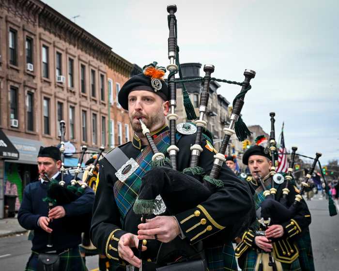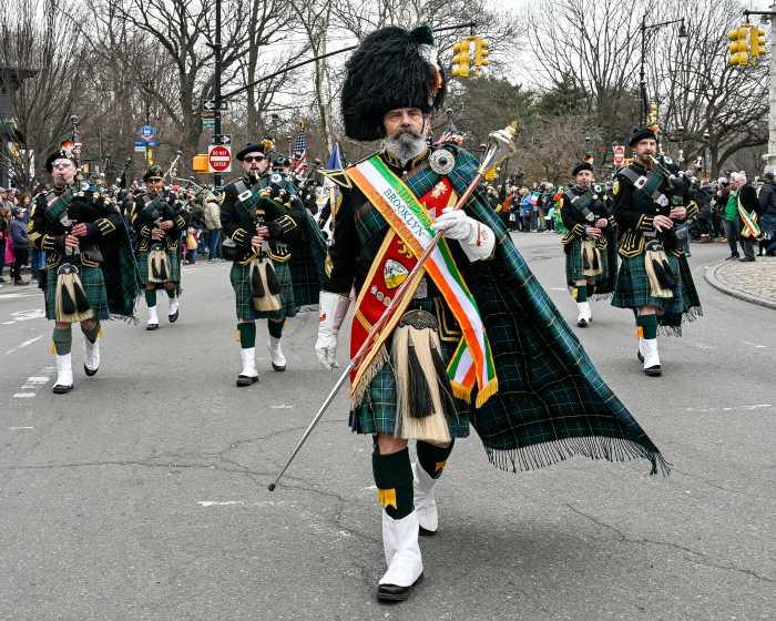 The pageantry of bagpipers, marching bands, Irish dancers, local politicians and community groups stepped off at 1:30 p.m. to the cheers of revelers — many decked out in shamrock green and proudly waving Irish flags — who lined the parade route along 15th Street, Seventh Avenue, Garfield Place and Prospect Park West.