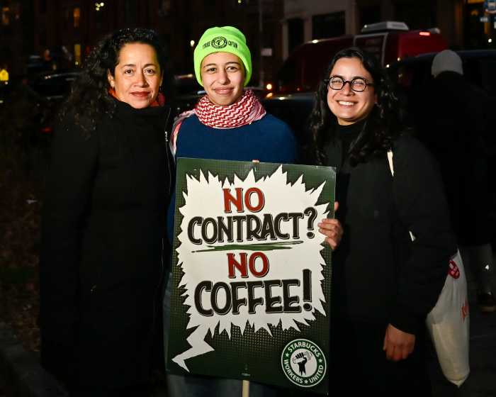 “The company has not been negotiating in good faith, has over 700 unfair labor practices that have been left unresolved, and we are here to fight for a fair contract and to fight to resolve these unfair labor practices,” said Saaed, noting that without workers, Starbucks wouldn’t be able to make a profit.