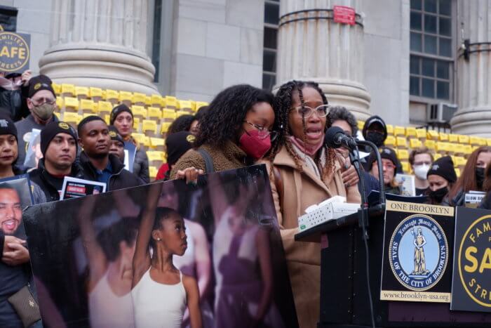 Survivors spoke through tears as they held up portraits of their lost loved ones, such as Marcia Landais, whose 12-year-old daughter Joie Sellers was fatally struck by a hit-and-run driver in Flatlands, Brooklyn, in 2014.