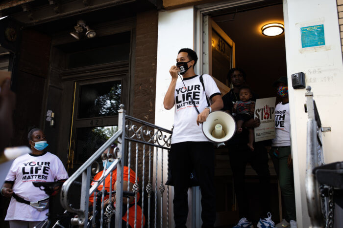 An outreach worker with cure violence group Man Up! reminded the community of shooting responses that the groups had organized in past years around Bedford-Stuyvesant. These organizations typically respond to shootings within 72 hours to send a message that the community doesn’t tolerate violence.