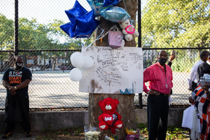 After the rally, the anti-violence groups continued marching to Restoration Plaza, passing several NYPD “wanted” posters for the baby’s killer. As of July 21, no one had been charged for the homicide.