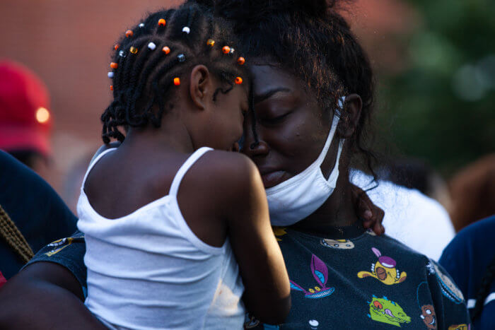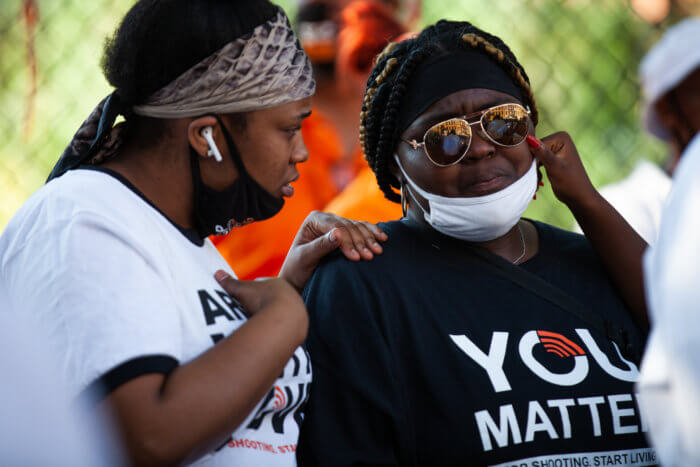 On the evening of the march, S.O.S. member Takia Gilmore embraced Gardner’s aunt, 23-year-old Shareema Johnson, during a community prayer about the need to curb violence and the devastating effects gun violence has on communities.