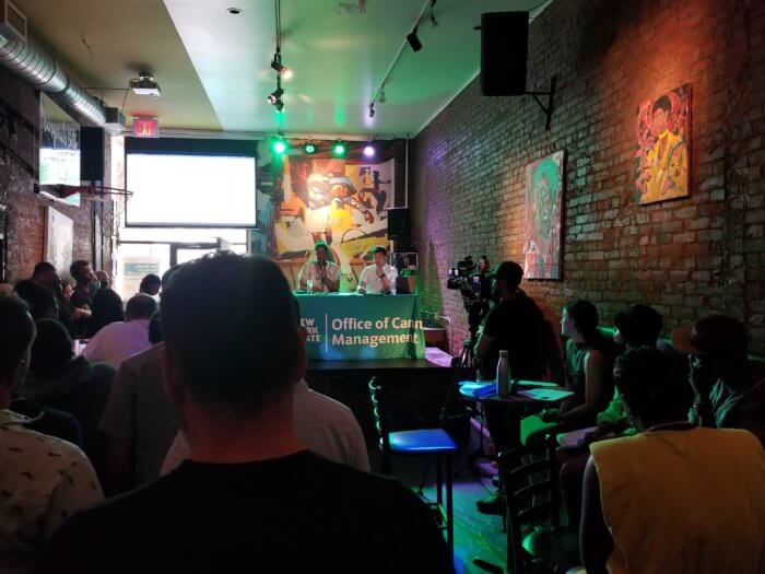 On Monday, dozens of hopeful kush pushers descended on Basquiat’s Bottle, a bar on Fulton Street in Bedford-Stuyvesant, for OCM’s first “cannabis conversation” with Brooklyn residents, answering questions on the provision of Conditional Adult-Use Retail Dispensary (CAURD) licenses.