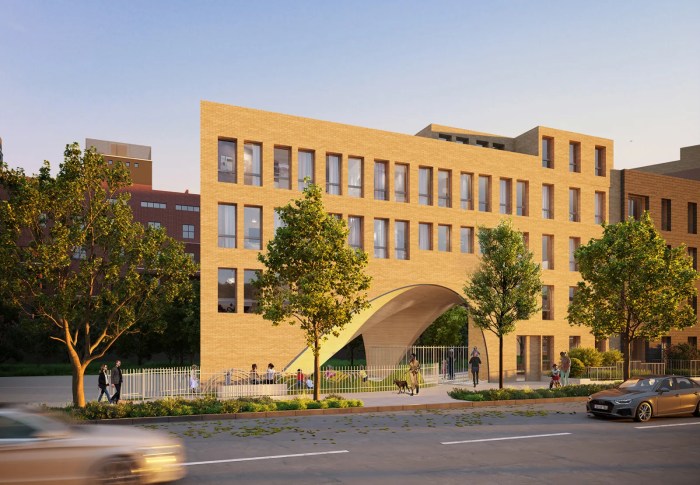 “The walkups are like classic Brooklyn walkups. They’re mostly four stories, they have stoop gardens, they have staircases. They’re fully accessible. We made sure that we meet all the accessibility requirements, including the ground floor…this was the amazing thing, that doing these smaller buildings actually not only fit into the community better, but it was more economic. It was actually easier. In other words, it was using classic Brooklyn prototypes.”