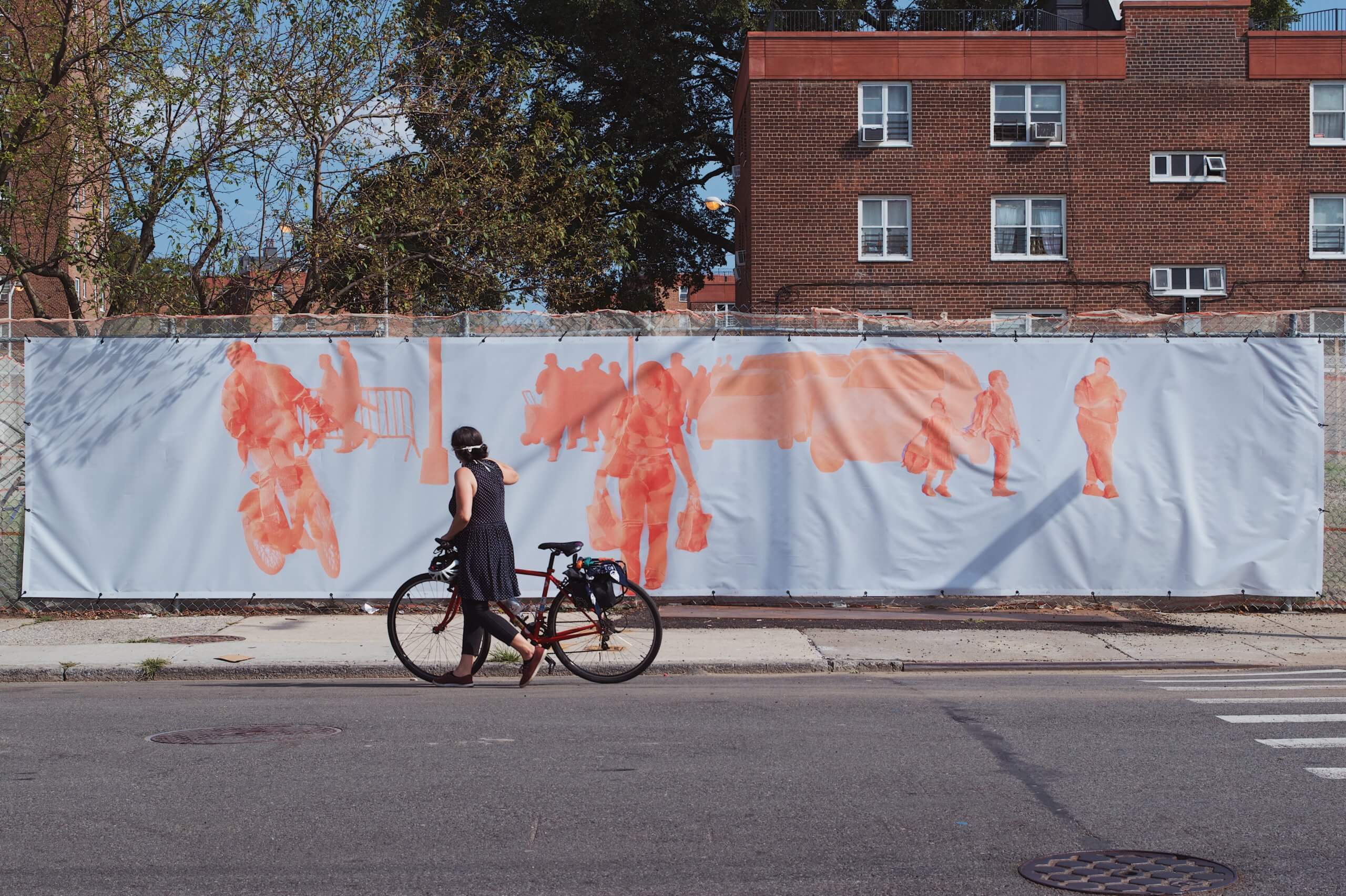 The $30,000 arts project was funded by ArtBridge and is part of the Cultural Affairs Department’s City Canvas program, which seeks to transform construction fencing and sidewalk sheds as art works around the city.
