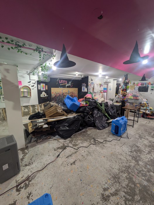 Bhat, who moved Private Picassos from Park Slope to Clinton Hill in 2024, had already seen signs of trouble. During a smaller storm in June, minor flooding seeped up through the drains. She spent thousands of dollars out of pocket to repair previous damage, add sump pumps and install sandbags. But when the flash flood struck on Oct. 30, even those precautions couldn’t keep the torrent out.