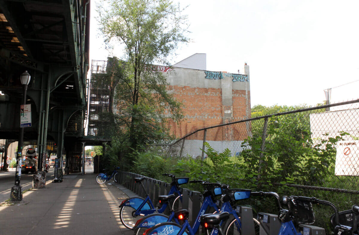 Surrounded by overgrown empty lots, the building is the only one on the Bushwick side of Broadway between Jefferson Avenue and Hancock Street. In March 2021 a full vacate order was placed on the four-story structure due to a collapsing wall, and a demolition permit was applied for, with NYC’s Department of Housing Preservation and Development listed as the owner. In September 2021, the application was withdrawn.