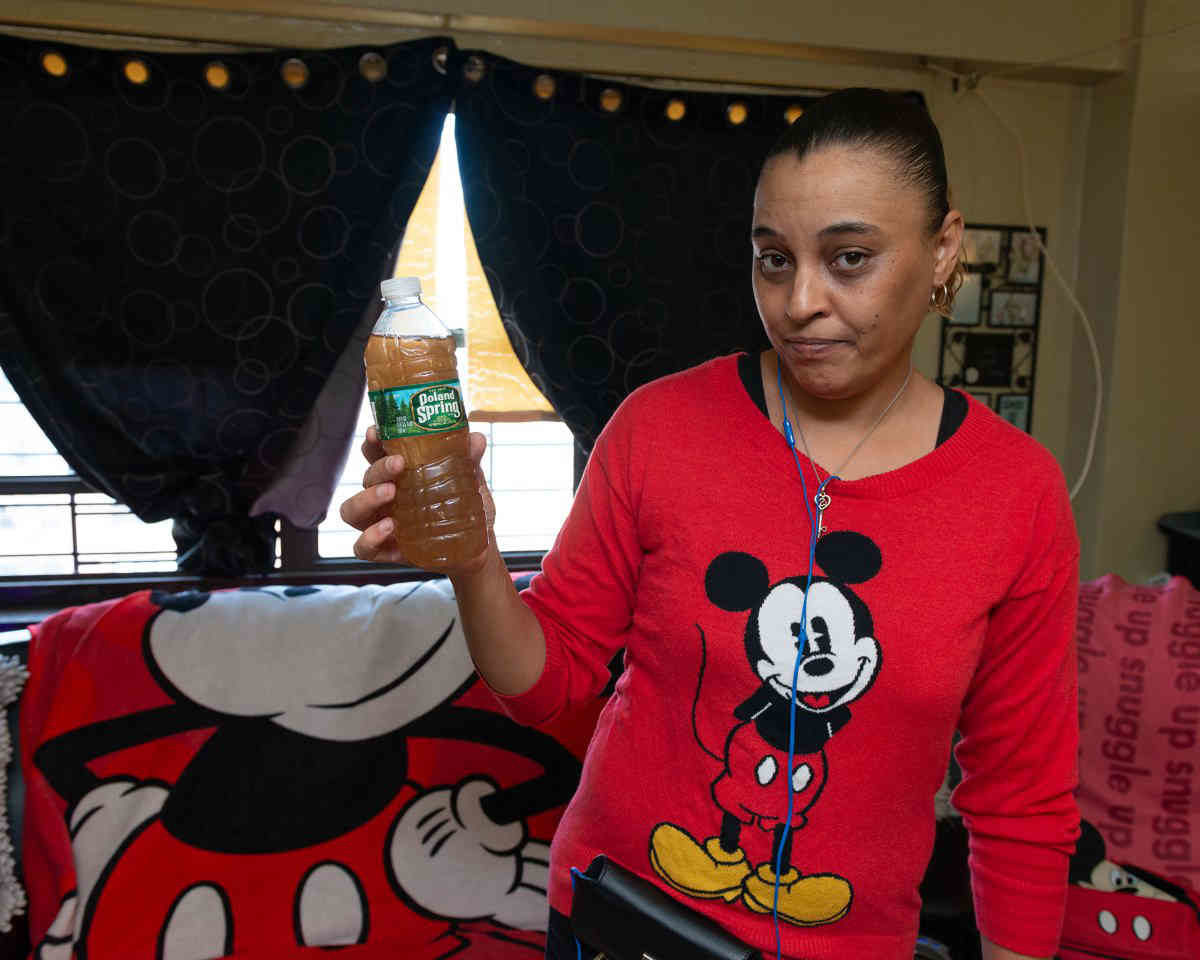 “I ended up buying my own jugs of water,” Lozada said, although she saves a three-year-old jug of murky, brown tap water from her kitchen sink, which she waves in front of housing authorities and elected officials to showcase the filth on tap.