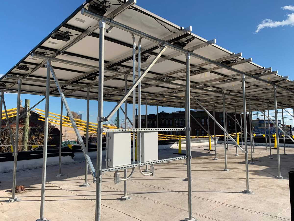 The 60 solar panels are raised on a canopy nine feet above the roof, which allowed them to squeeze in as many as possible, and the backup battery — created by Simpliphi — is the first lithium-ion battery installed in New York City, which was chosen because of its safety.