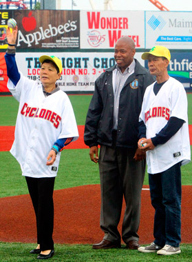 The Cyclones may have lost the home opener against the hated Staten Island Yankees, but fans stood proud nonetheless by honoring slain police detective Wenjian Liu when his parents threw out the season ceremonial first pitch at MCU Park on June 20.