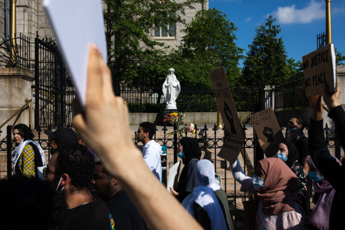 On the northern end of the borough, thousands of people gathered at Williamsburg’s McCarren Park for the second silent vigil this week. Attendees kneeled for eight minutes and 46 second of silence — the amount of time Minneapolis police officer Derek Chauvin pinned George Floyd to the ground.