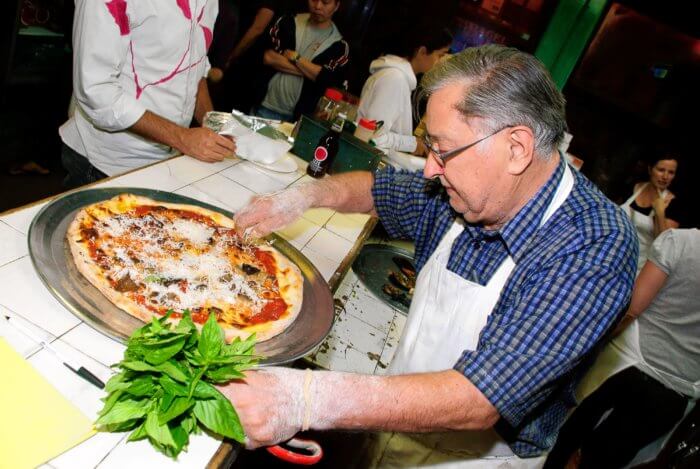 De Marco worked behind the counter well into his 80s, sprinkling with love his basil, mozzarella di bufala, and San Marzano tomatoes imported from the old country onto his pizza for the customers braving lines around the corner to get a nosh of the famous pies. He was also known for his personal warmth, with love going both into every pie and towards every customer.