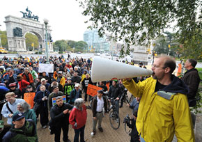 Supporters vastly outnumbered opponents in dueling rallies over the Prospect Park West bike lane on Thursday morning, as 250 cyclists rallied in Grand Army Plaza and then took a victory lap roughly four dozen opponents gathered just to the south.