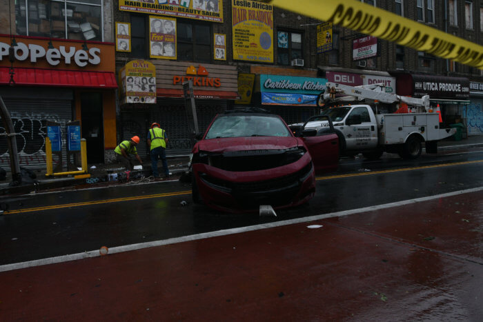 The fire was put under control at about 5:52, the department said; two patients were transferred to Methodist Hospital for evaluation. The Department did not release information on the patients’ condition or of the apartments involved in the conflagration, though the look of things through a window firefighters broke through painted a scene of heavy damage.