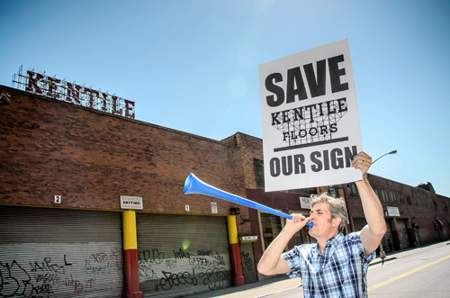 Activists and pols have joined forces to fight to save the iconic Kentile Floors sign, which is in danger of being demolished after towering over Gowanus for decades.