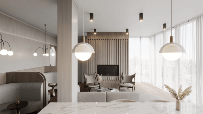 Renderings from interior designer Durukan Design, whose website says the building will hold 42 condos, show sleek modern units in pale colors. Materials will include natural stone, fluted millwork and wide plank oak floors. A combo screening room and karaoke lounge will open to a shared garden, and on the sixth floor will be a lounge and terrace, according to the firm.