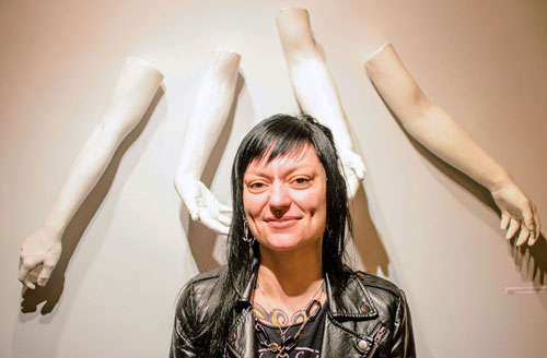 “Fragmented Being” is not Best’s first exhibition at a tattoo parlor. In fact, curator Erica Flannes first scouted Best’s art at nearby Magic Cobra Tattoo Society. When viewed live, it is easy to see why Best’s handiwork fares well in the environment — her latest show features pairs of arms, cast in smooth plaster, and pierced by iron nails or cuffed with copper wire.