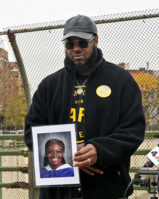 Families for Safe Streets advocate Darnell Sealy-McCrorey is the father of 13-year-old Niyell McCrorey, who was hit by a car at the intersection of Manhattan Avenue and West 110th Street on Oct. 24, 2024, and who passed away from her injuries a week later.