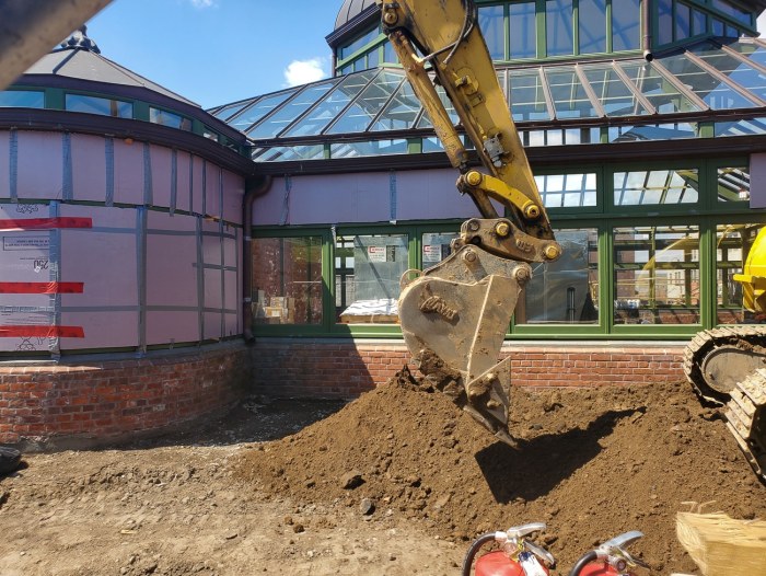 Construction has officially commenced on the long-awaited Green-Wood Visitor Center, as observed during a stroll past the historic Weir Greenhouse last week.