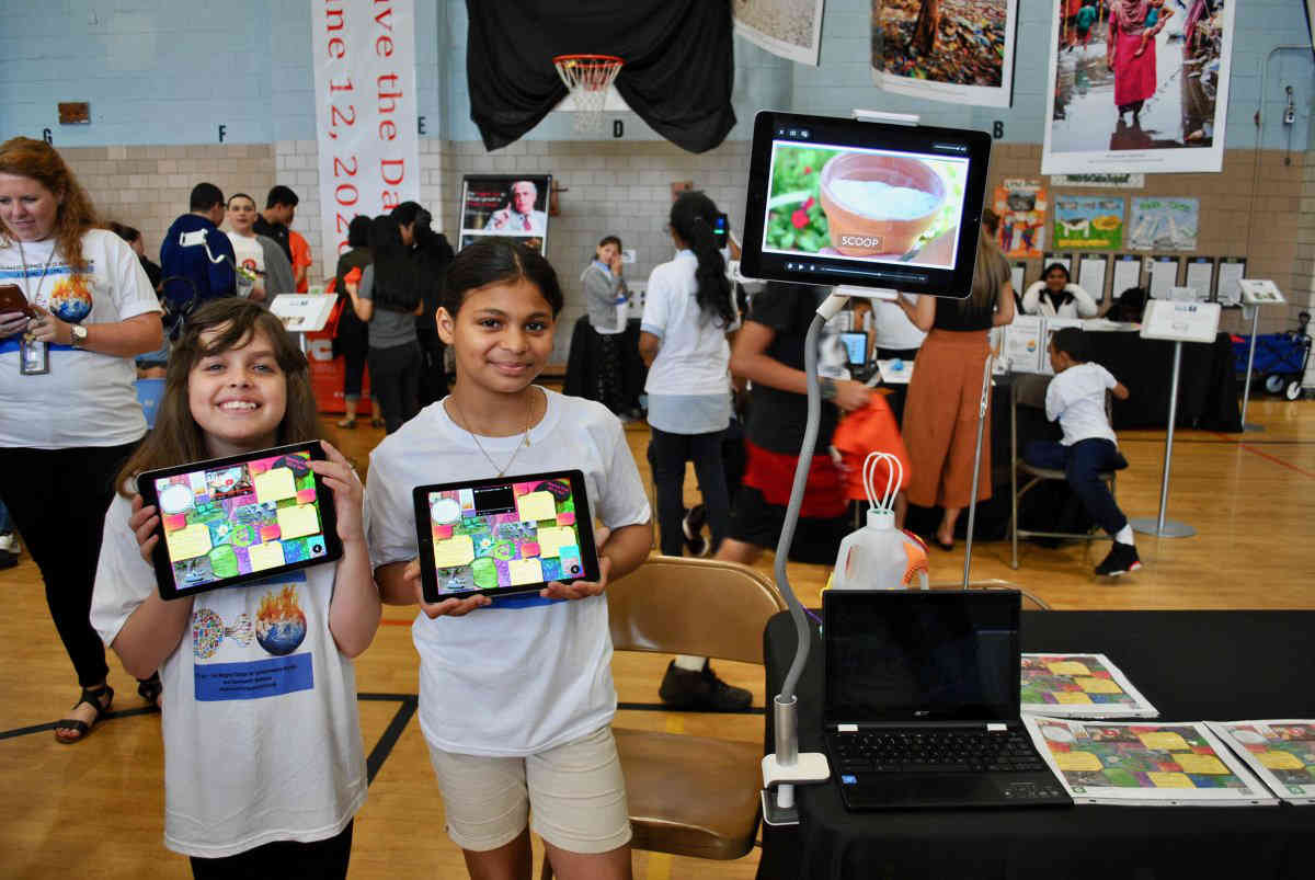 At the expo, the budding environmentalists manned booths that stretched up and down the W. 12th Street school’s gym, where they spoke passionately about climate issues such as the risks polar bears face, how to clean up beaches, and fun ways to recycle.