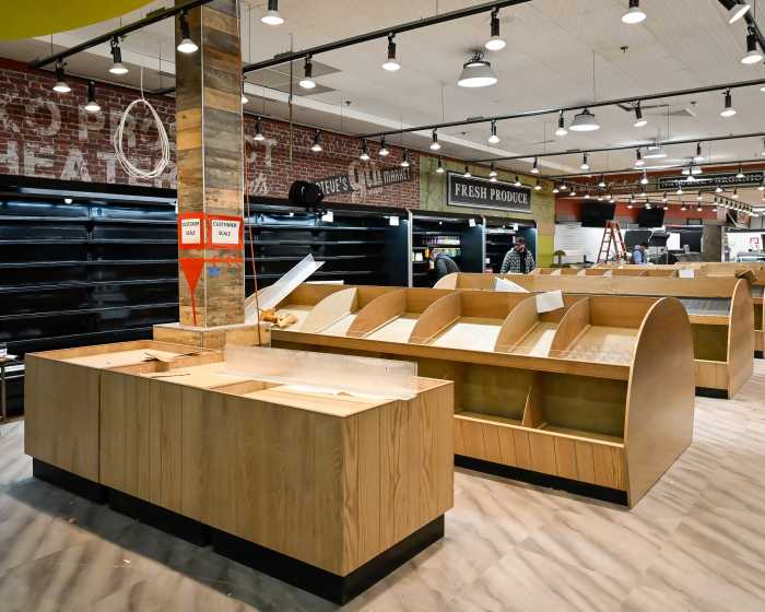 The renovation includes brand-new refrigerators, new flooring, and lighting fixtures that brighten the formerly dull and dark space. The width of the aisles, which many customers praised for their accessibility to wheelchairs and strollers, remains the same.
