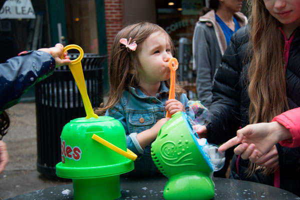 Kids had a blast hanging out on the car-free street, frolicking amongst the hundreds of bubbles from a machine — producing a result that one youngster likened to its own balloon-like metropolis.