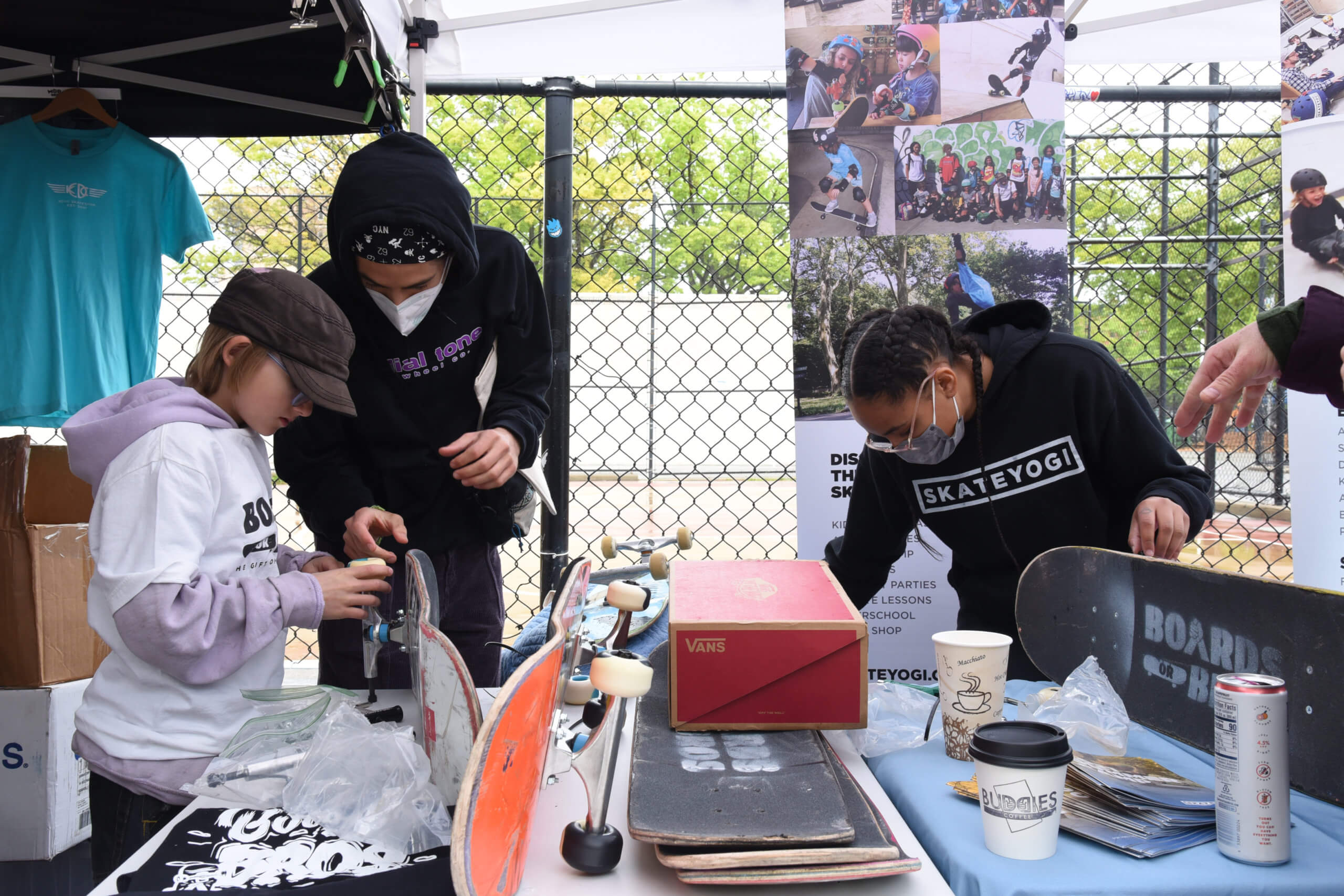 Skaters on Saturday took advantage of complimentary lessons from Crown Heights skate-shop SkateYogi, and scored some free swag donated by Vans, Williamsburg skateshop KCDC, the nonprofit Boards for Bros, and the skate collective GrlSwirl.