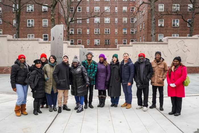 City officials, artists, residents, and cultural leaders unveiled a new permanent outdoor heritage walk and community art installation at Kingsborough Houses in Crown Heights on Dec. 5.