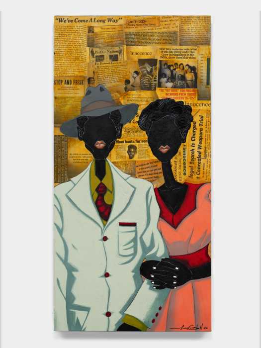Now in the latter half of his career, he brings the full weight of that journey to his single piece in “Looking for Terry,” a work he describes as a soft historical timeline of layering newspaper articles tracing the lineage of racial surveillance from slave patrol laws to slavery and Jim Crow to stop-and-frisk. For Campbell, telling the historical context of stop-and-frisk and racial discrimination through his art is important, as America is embedded with racism and the Black experience is more universal than many realize.