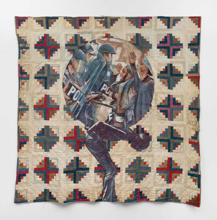 For Beach, fabric and textile represent memory, protection and a form of resistance that stretches back centuries. Beach works in what he calls his “Beloved Tapestry” series, large-scale textile pieces that he deliberately roots in the tradition of Black women who quilted not simply as a craft but as an act of survival. This notion has shown up in the way he has engaged with racial discrimination in America.
