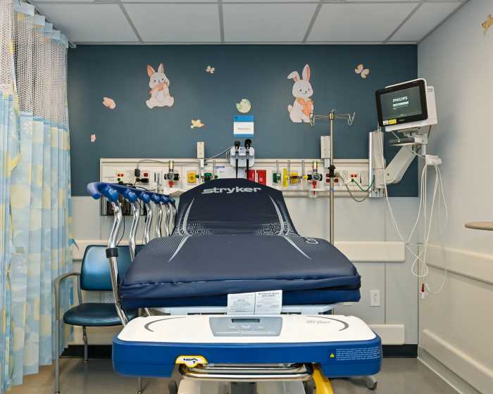 The bright, kid-friendly space reflects the growing need for pediatric care in Brooklyn and can serve more than 30,000 children annually. It features 32 treatment areas, including four resuscitation areas and isolation rooms, as well as on-site, state-of-the-art diagnostic imaging with multiple modalities — including X-ray, ultrasound, and CT — allowing for rapid diagnosis of emergency conditions.