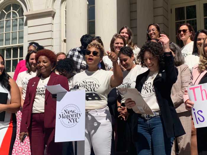 Greenpoint community advocates and local pols gathered at City Hall Thursday, calling on Mayor Eric Adams to “do the right thing” and not roll back his support for the planned redesign of McGuinness Boulevard, which had been finalized after months of community meetings.