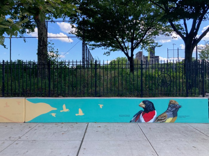 Migratory Pathways, a new mural trail in Red Hook Park, invites visitors to explore the story of migration through colorful depictions of Brooklyn’s native birds and plants.