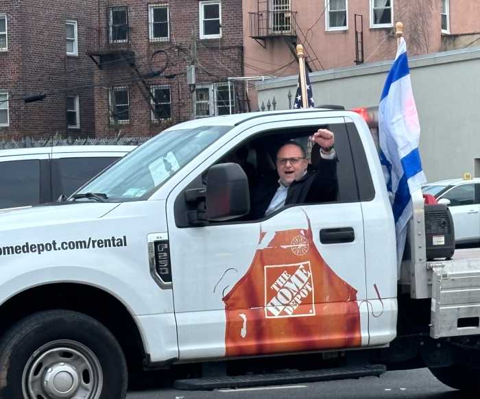 Assembly Member Michael Novakhov (AD-45) arrived with a truck outfitted with American and Israeli flags and loudspeakers playing patriotic music.