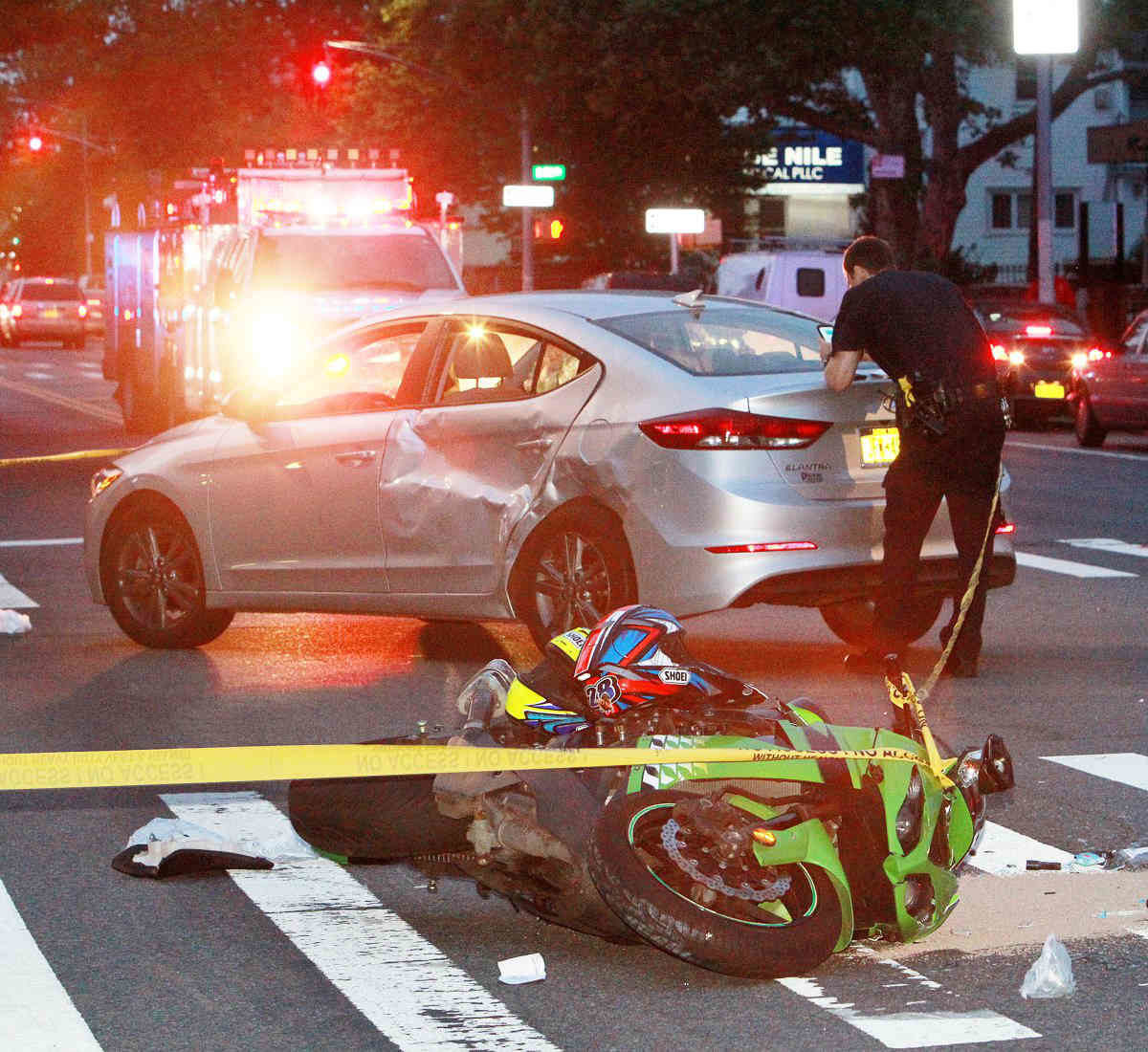 The collision sent Vasapoli flying from the saddle of his 2010 Kawasaki, and paramedics rushed the Queens man to Brookdale Hospital, where he was pronounced dead, police said.