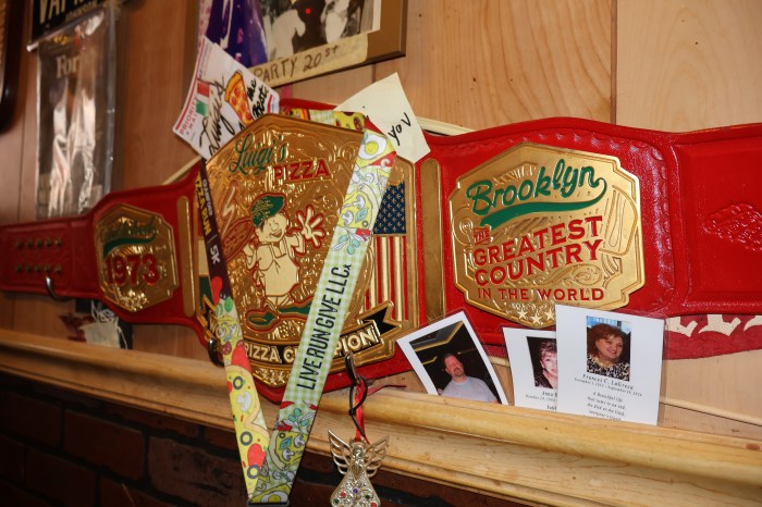 During a recent visit to Luigi’s ahead of National Pizza Day, Brooklyn Paper witnessed a drive-by compliment when a patron shouted through the door window, “This is the best pizza in Brooklyn!”