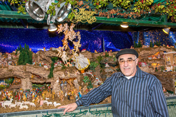 He started displaying the homemade nativity in his bakery 40 years ago, and when he sold the business in 2001, he started showing the work in front of his home. Now he builds presepi for friends and family, and he once crafted one for Coney Island’s Gargiulo’s Restaurant. Hurricane Sandy destroyed the nativity when floodwaters filled the Coney Island institution, but this year Miniero lent the restaurant another creation from his private collection.